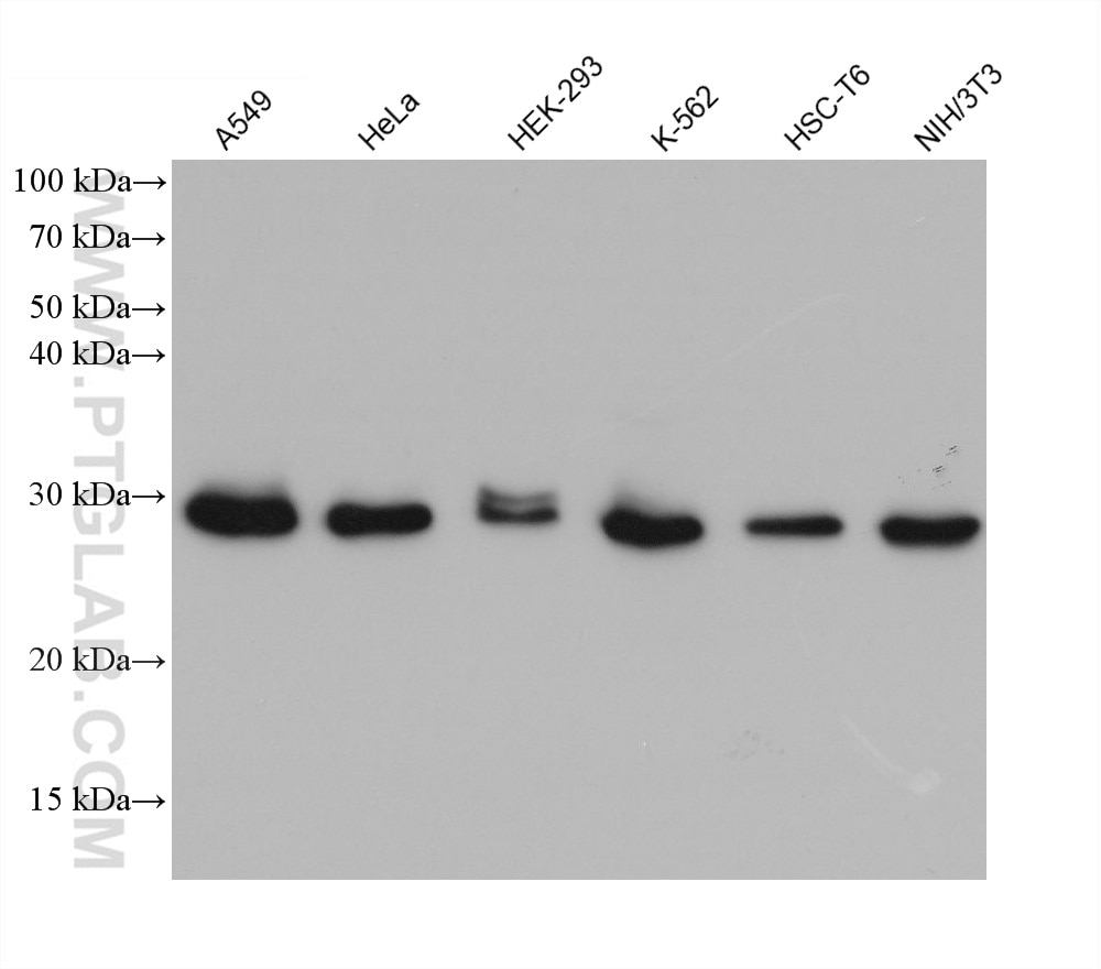 The EIF6 antibody from Proteintech is a mouse monoclonal antibody to a recombinant protein of human EIF6. This antibody recognizes human, mouse, rat antigen. The EIF6 antibody has been validated for the following applications: WB, IF/ICC, ELISA analysis.