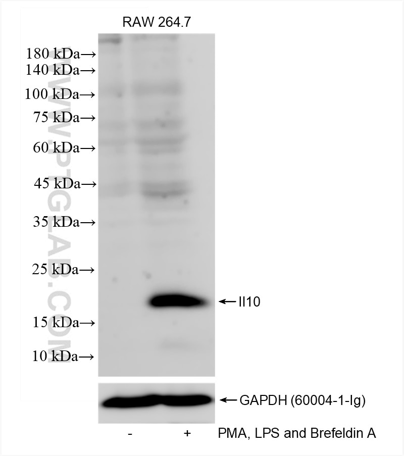 The IL-10 antibody from Proteintech is a rabbit recombinant antibody to a fusion protein of mouse IL-10. This antibody recognizes mouse antigen. The IL-10 antibody has been validated for the following applications: WB, IF/ICC, ELISA analysis.