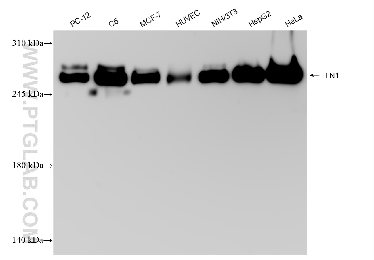The Talin-1 antibody from Proteintech is a rabbit recombinant antibody to a fusion protein of human Talin-1. This antibody recognizes human, mouse, rat antigen. The Talin-1 antibody has been validated for the following applications: WB, IHC, IF/ICC, FC (Intra), ELISA analysis.