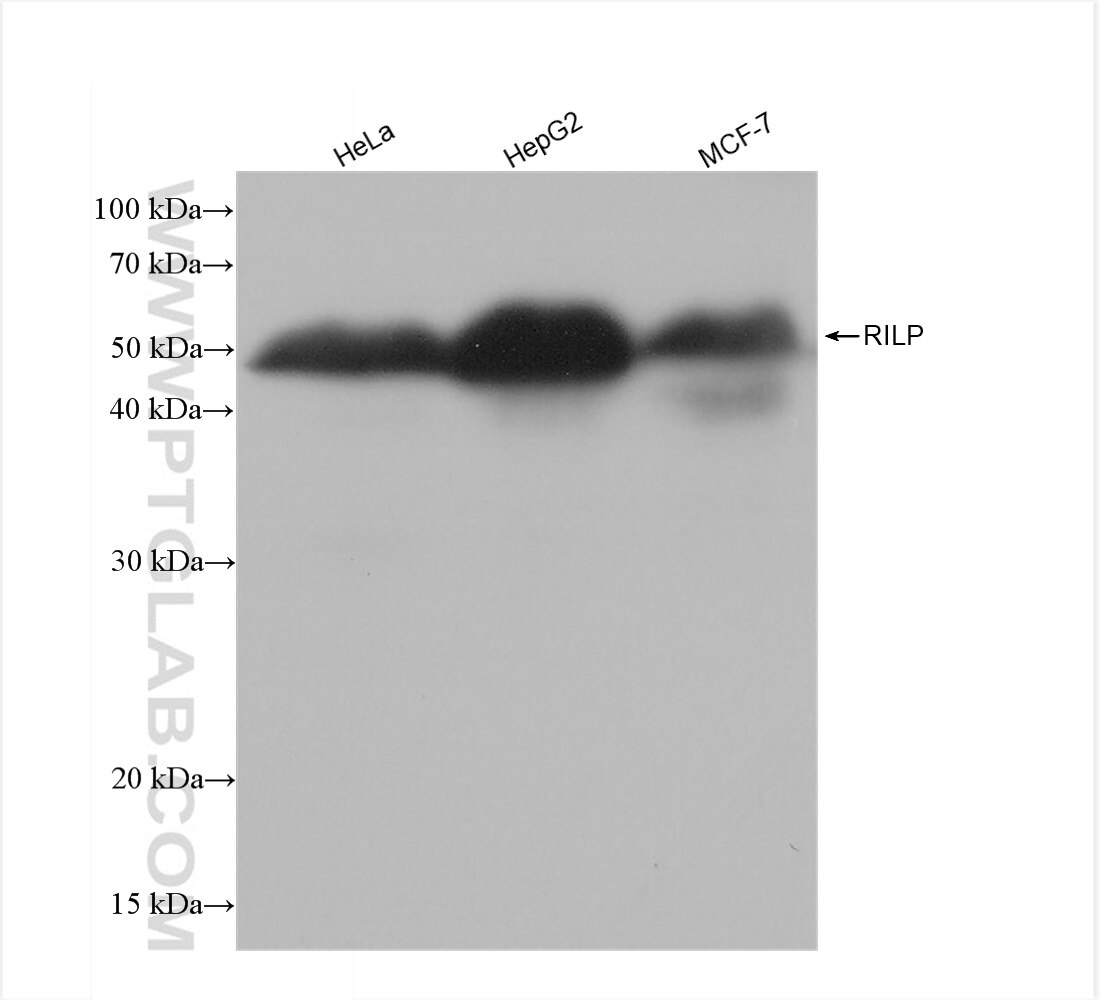 The RILP antibody from Proteintech is a rabbit recombinant antibody to a recombinant protein of human RILP. This antibody recognizes human antigen. The RILP antibody has been validated for the following applications: WB, IHC, ELISA analysis.