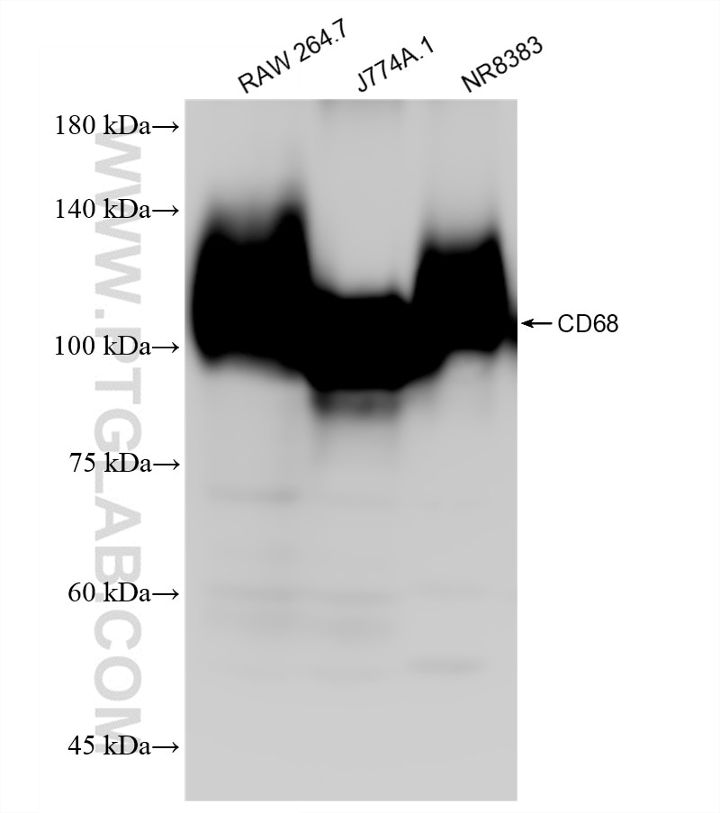 The CD68 antibody from Proteintech is a rabbit recombinant antibody to a recombinant protein of mouse CD68. This antibody recognizes mouse, rat antigen. The CD68 antibody has been validated for the following applications: WB, IHC, IF-P, ELISA analysis.