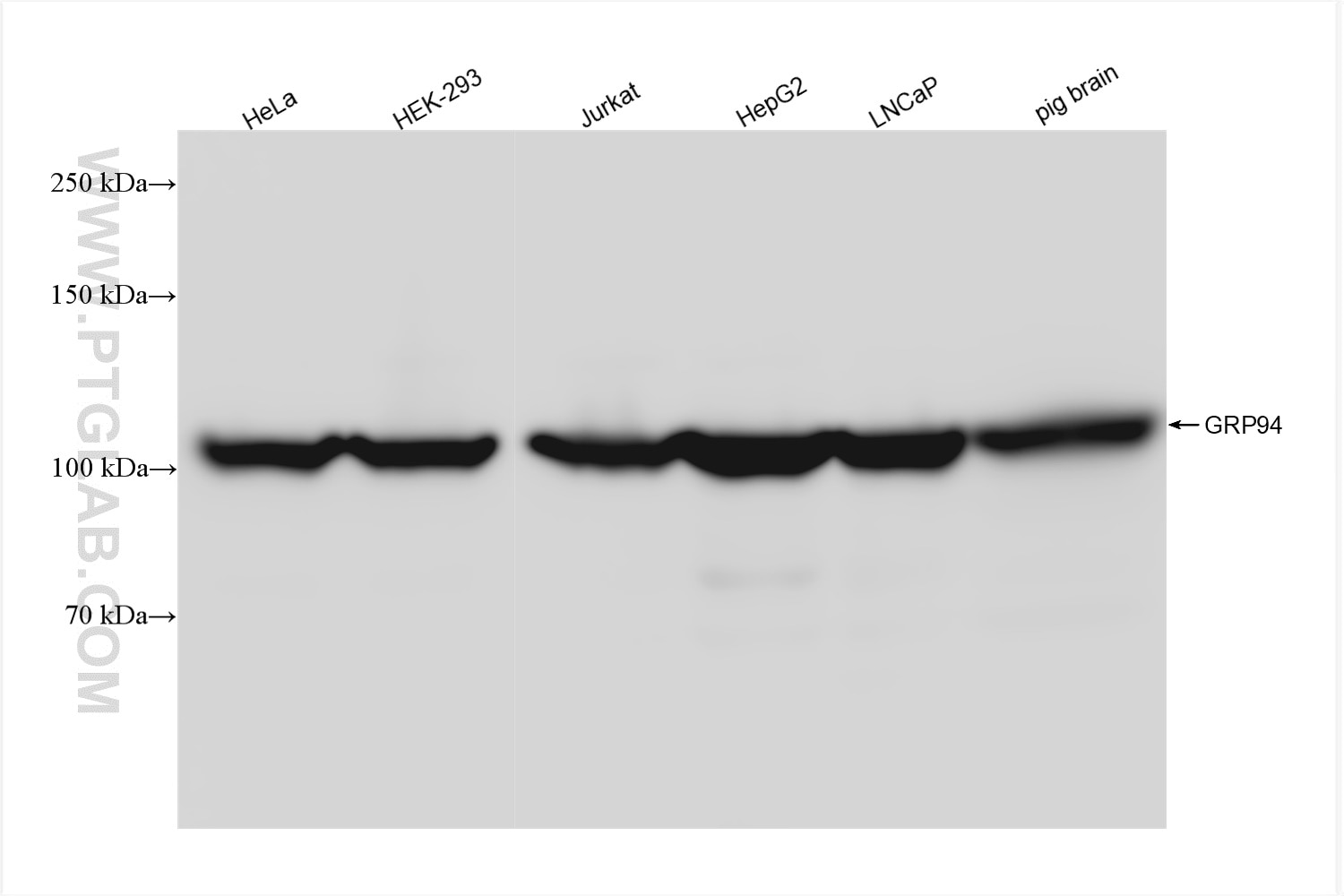The GRP94 antibody from Proteintech is a rabbit recombinant antibody to a recombinant protein of human GRP94. This antibody recognizes human, pig antigen. The GRP94 antibody has been validated for the following applications: WB, IHC, IF/ICC, FC (Intra), IP, ELISA analysis.