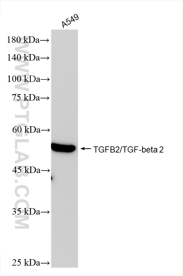 The TGFB2/TGF-beta 2 antibody from Proteintech is a rabbit recombinant antibody to a peptide of human TGFB2/TGF-beta 2. This antibody recognizes human antigen. The TGFB2/TGF-beta 2 antibody has been validated for the following applications: WB, IHC, IF/ICC, FC (Intra), ELISA analysis.