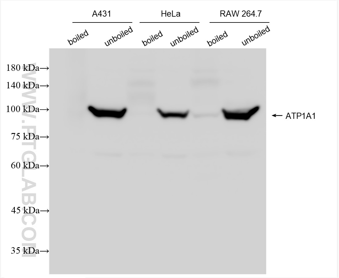 The ATP1A1 antibody from Proteintech is a rabbit recombinant antibody to a fusion protein of human ATP1A1. This antibody recognizes human, mouse antigen. The ATP1A1 antibody has been validated for the following applications: WB, IF/ICC, FC (Intra), ELISA analysis.