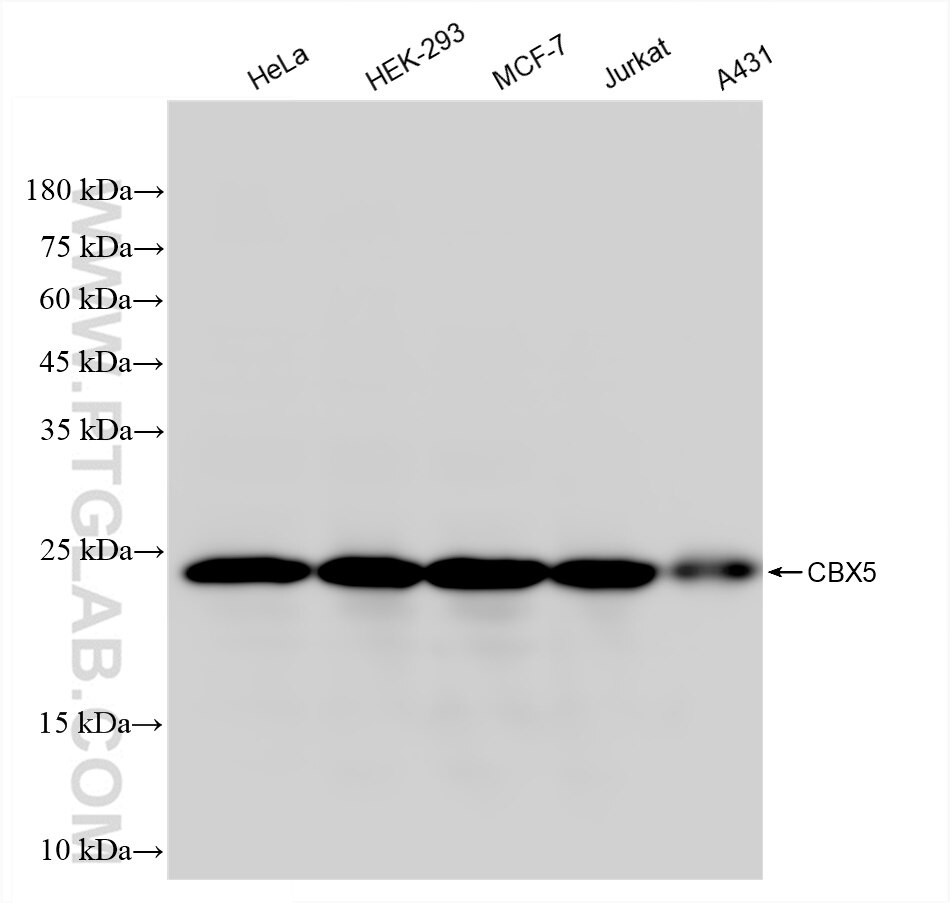 The CBX5 antibody from Proteintech is a rabbit recombinant antibody to a fusion protein of human CBX5. This antibody recognizes human antigen. The CBX5 antibody has been validated for the following applications: WB, IF/ICC, ELISA analysis.