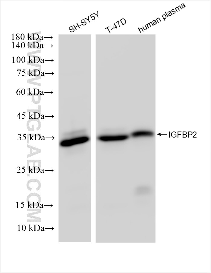 The IGFBP2 antibody from Proteintech is a rabbit recombinant antibody to a fusion protein of human IGFBP2. This antibody recognizes human antigen. The IGFBP2 antibody has been validated for the following applications: WB, ELISA analysis.