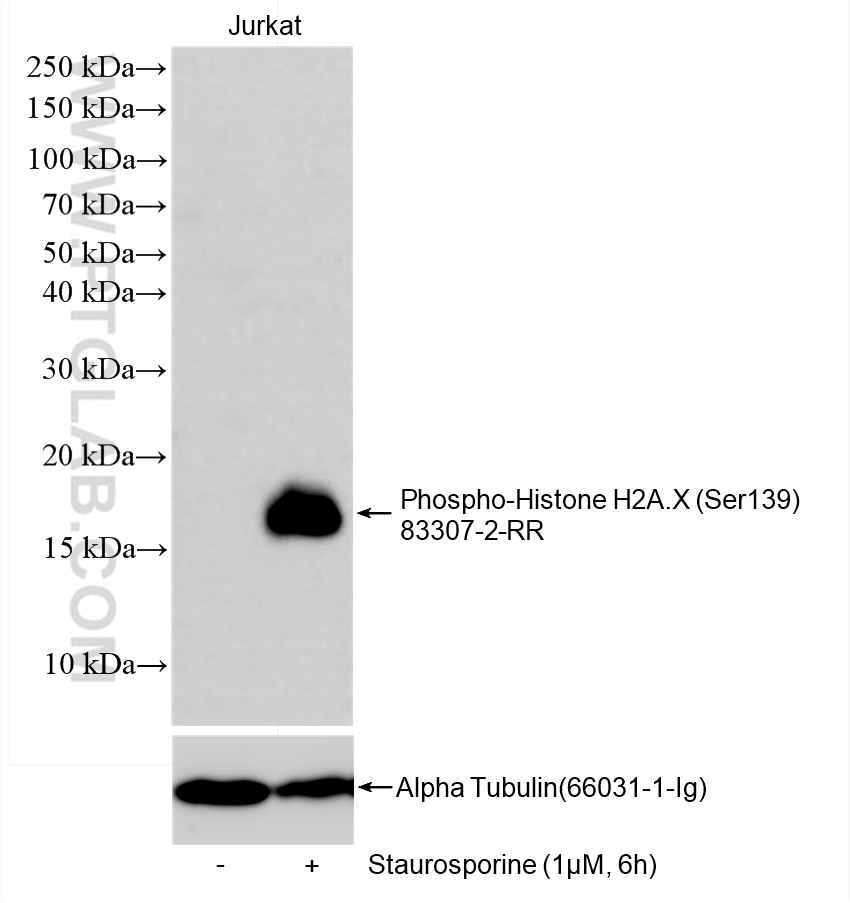 The Phospho-Histone H2A.X (Ser139) antibody from Proteintech is a rabbit recombinant antibody to a peptide of human Phospho-Histone H2A.X (Ser139). This antibody recognizes human antigen. The Phospho-Histone H2A.X (Ser139) antibody has been validated for the following applications: WB, IHC, IF/ICC, FC (Intra), ELISA analysis.