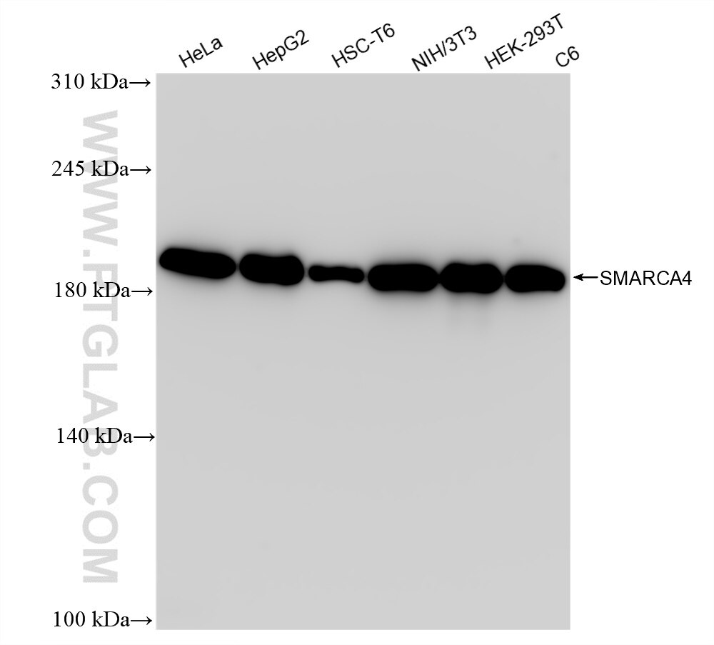 The SMARCA4 antibody from Proteintech is a rabbit recombinant antibody to a fusion protein of human SMARCA4. This antibody recognizes human, mouse, rat antigen. The SMARCA4 antibody has been validated for the following applications: WB, IHC, FC (Intra), ELISA analysis.