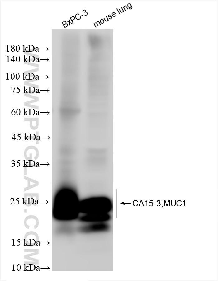 The MUC1/CA15-3 C-terminal antibody from Proteintech is a rabbit recombinant antibody to a recombinant protein of human MUC1/CA15-3 C-terminal. This antibody recognizes human, mouse antigen. The MUC1/CA15-3 C-terminal antibody has been validated for the following applications: WB, IHC, ELISA analysis.