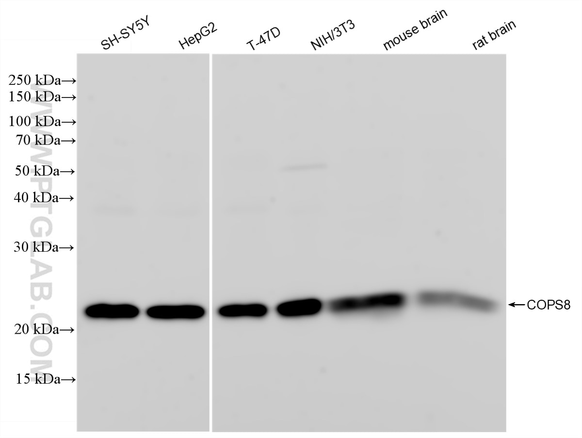 The COPS8 antibody from Proteintech is a rabbit recombinant antibody to a fusion protein of human COPS8. This antibody recognizes human, mouse, rat antigen. The COPS8 antibody has been validated for the following applications: WB, IHC, IF/ICC, ELISA analysis.