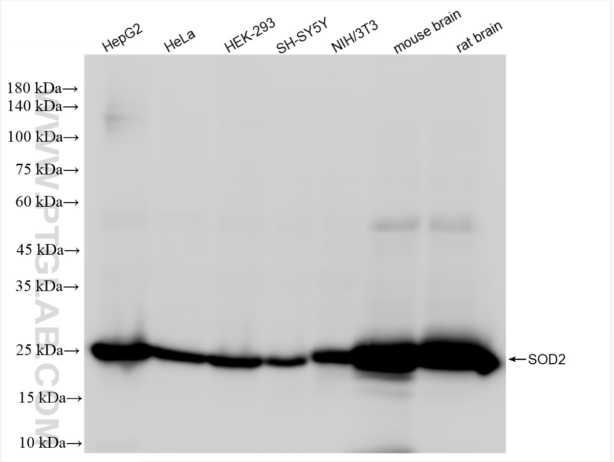 The SOD2 antibody from Proteintech is a rabbit recombinant antibody to a recombinant protein of human SOD2. This antibody recognizes human, mouse, rat antigen. The SOD2 antibody has been validated for the following applications: WB, IHC, IF/ICC, FC (Intra), ELISA analysis.