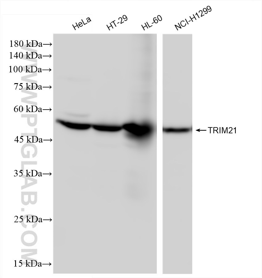 The TRIM21 antibody from Proteintech is a rabbit recombinant antibody to a fusion protein of human TRIM21. This antibody recognizes human antigen. The TRIM21 antibody has been validated for the following applications: WB, IHC, IF/ICC, FC (Intra), ELISA analysis.