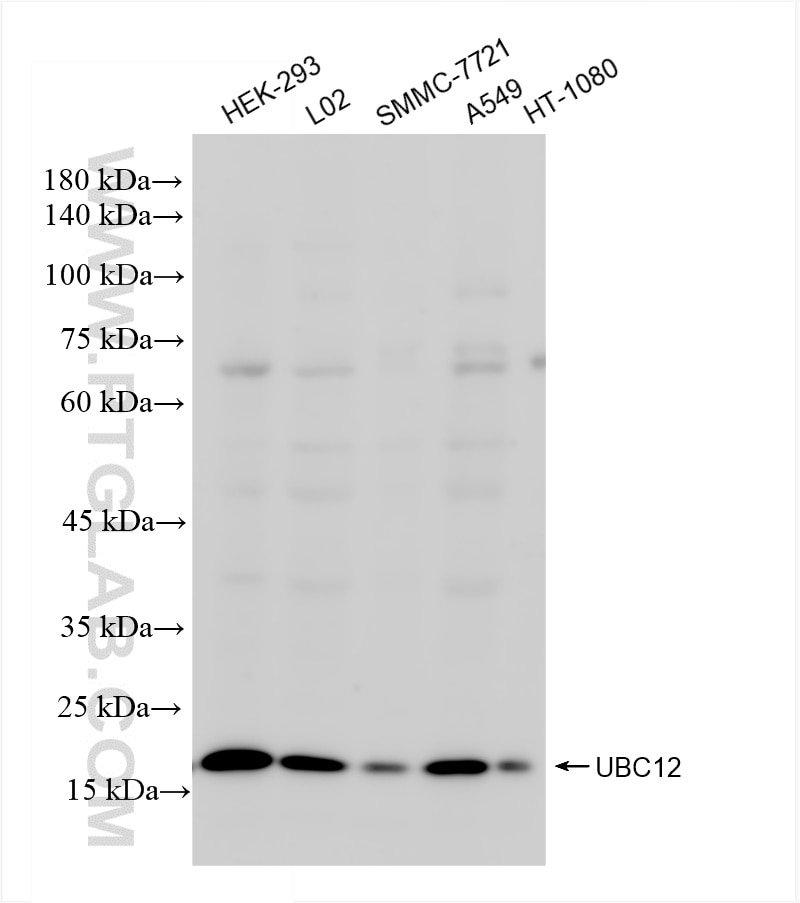 The UBC12 antibody from Proteintech is a rabbit recombinant antibody to a fusion protein of human UBC12. This antibody recognizes human antigen. The UBC12 antibody has been validated for the following applications: WB, FC (Intra), ELISA analysis.