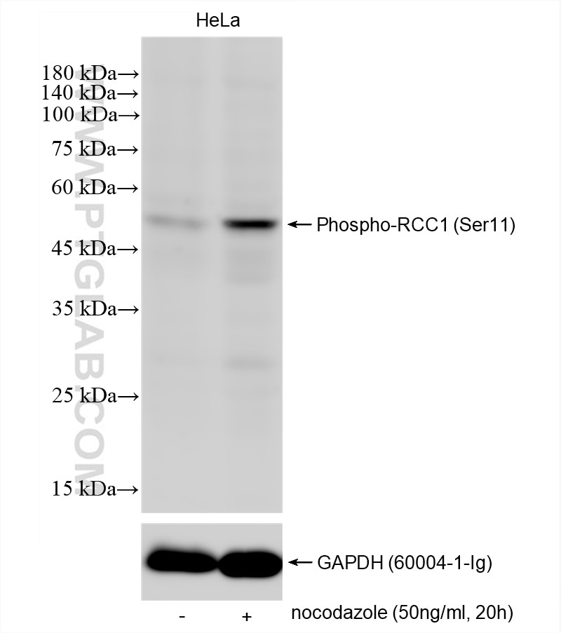 The Phospho-RCC1 (Ser11) antibody from Proteintech is a rabbit recombinant antibody to a peptide of human Phospho-RCC1 (Ser11). This antibody recognizes human antigen. The Phospho-RCC1 (Ser11) antibody has been validated for the following applications: WB, ELISA analysis.