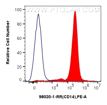 The CD14 antibody from Proteintech is a rabbit recombinant antibody to a fusion protein of mouse CD14. This antibody recognizes mouse antigen. The CD14 antibody has been validated for the following applications: IF/ICC, FC analysis.