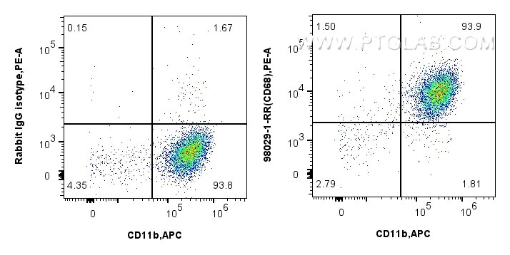 The CD68 antibody from Proteintech is a rabbit recombinant antibody to a fusion protein of mouse CD68. This antibody recognizes mouse antigen. The CD68 antibody has been validated for the following applications: FC (Intra) analysis.