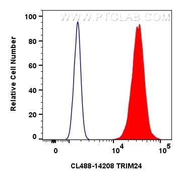 The TRIM24 antibody from Proteintech is a rabbit polyclonal antibody to a recombinant protein of human TRIM24. This antibody recognizes human, mouse, rat antigen. The TRIM24 antibody has been validated for the following applications: IF/ICC, FC (Intra) analysis. This antibody is coraliteR plus 488.