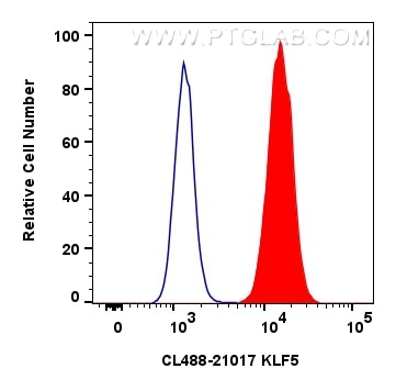 The KLF5 antibody from Proteintech is a rabbit polyclonal antibody to a recombinant protein of human KLF5. This antibody recognizes human antigen. The KLF5 antibody has been validated for the following applications: IF/ICC, FC (Intra) analysis. This antibody is coraliteR plus 488.
