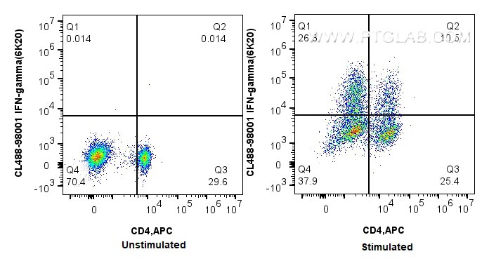 The IFN-gamma antibody from Proteintech is a rabbit recombinant antibody to a recombinant protein of rat IFN-gamma. This antibody recognizes rat antigen. The IFN-gamma antibody has been validated for the following applications: FC (Intra) analysis. This antibody is coraliteR plus 488.
