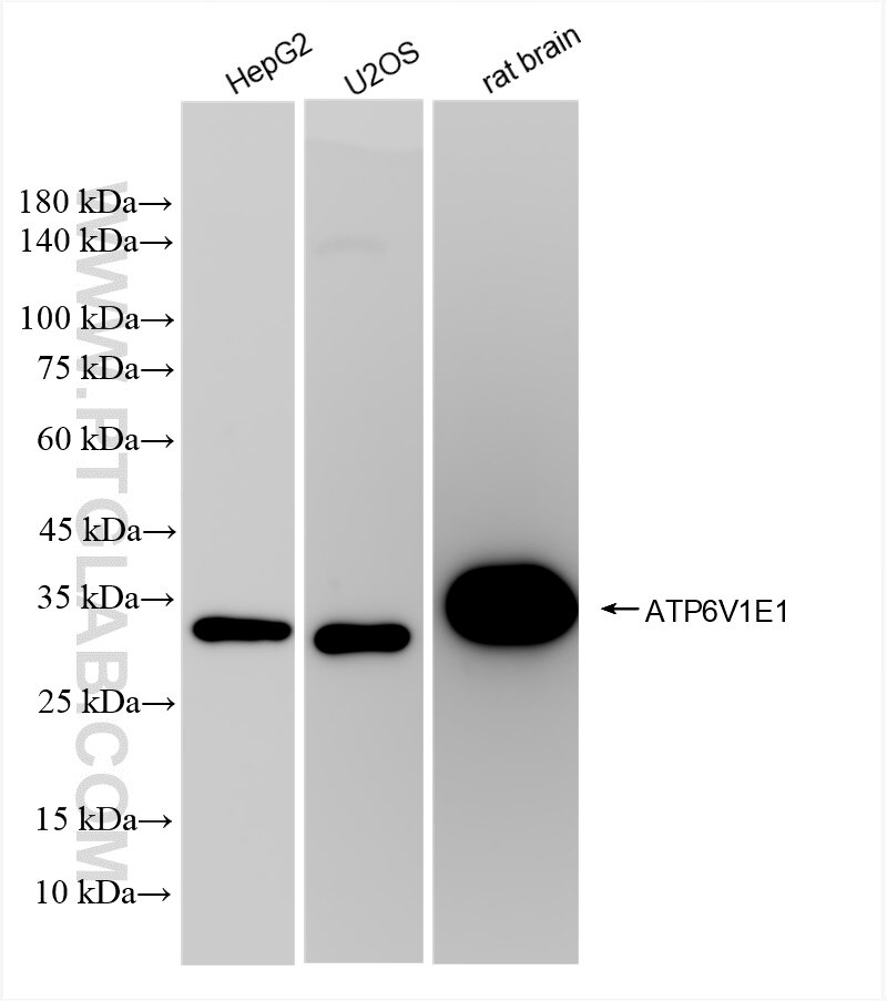 The ATP6V1E1 antibody from Proteintech is a rabbit recombinant antibody to a fusion protein of human ATP6V1E1. This antibody recognizes human, rat antigen. The ATP6V1E1 antibody has been validated for the following applications: WB, IHC, ELISA analysis.