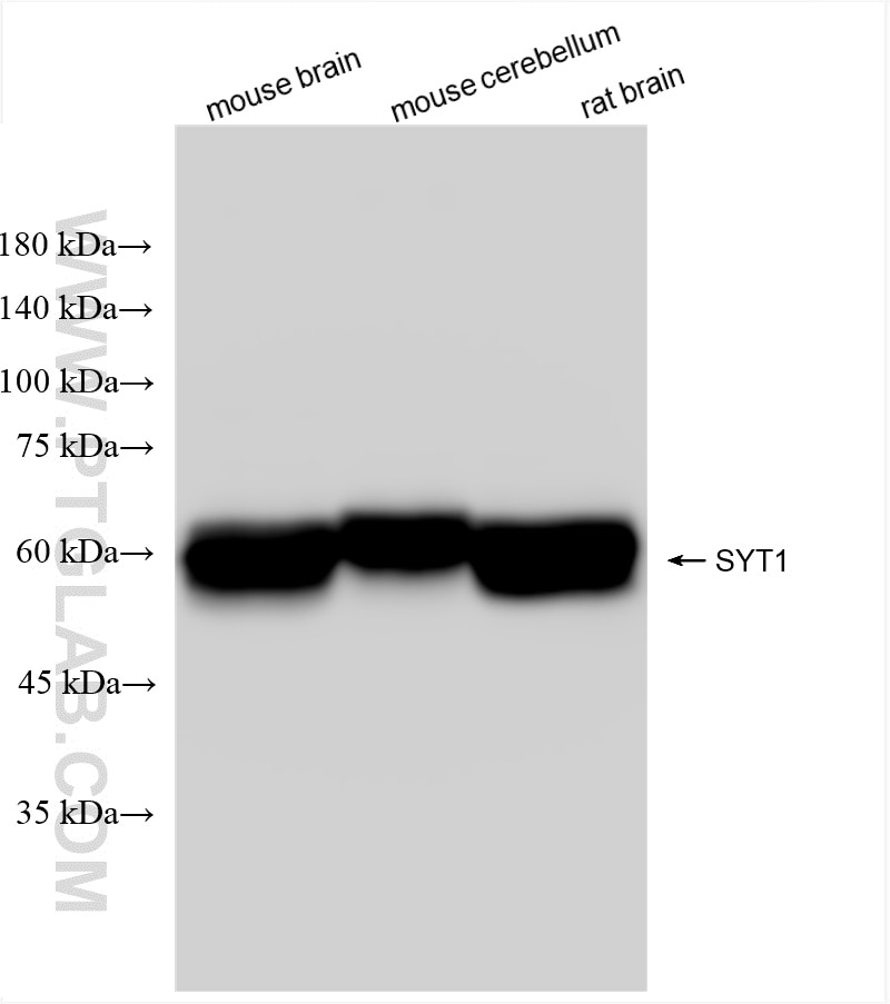 The Synaptotagmin-1 antibody from Proteintech is a rabbit recombinant antibody to a recombinant protein of human Synaptotagmin-1. This antibody recognizes human, mouse, rat antigen. The Synaptotagmin-1 antibody has been validated for the following applications: WB, IHC, IF/ICC, ELISA analysis.