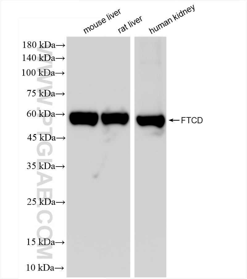 The FTCD antibody from Proteintech is a rabbit recombinant antibody to a recombinant protein of human FTCD. This antibody recognizes human, mouse, rat antigen. The FTCD antibody has been validated for the following applications: WB, ELISA analysis.