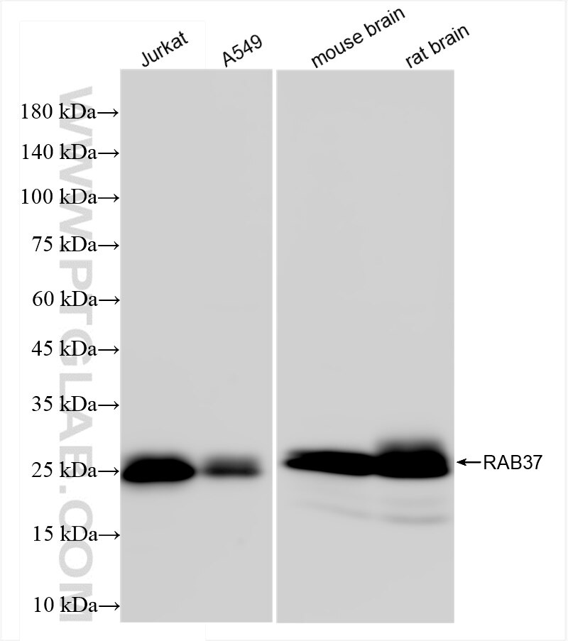 The RAB37 antibody from Proteintech is a rabbit recombinant antibody to a recombinant protein of human RAB37. This antibody recognizes human, mouse, rat antigen. The RAB37 antibody has been validated for the following applications: WB, IP, ELISA analysis.