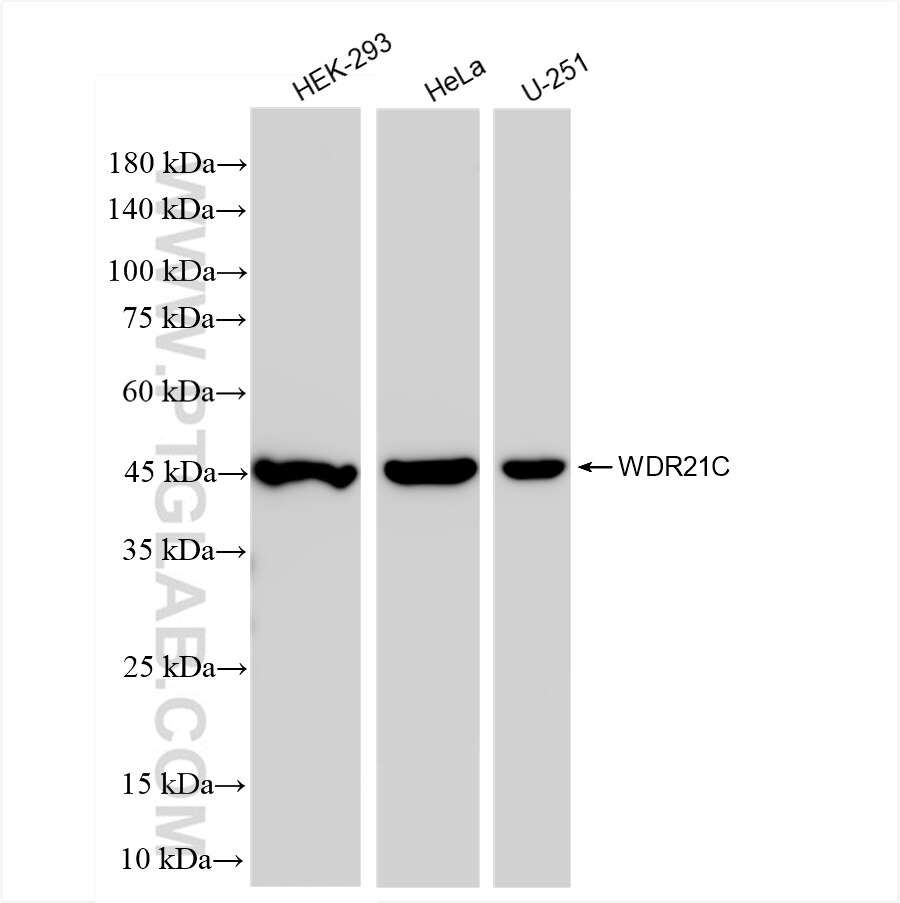 The WDR21C antibody from Proteintech is a rabbit recombinant antibody to a fusion protein of human WDR21C. This antibody recognizes human antigen. The WDR21C antibody has been validated for the following applications: WB, ELISA analysis.