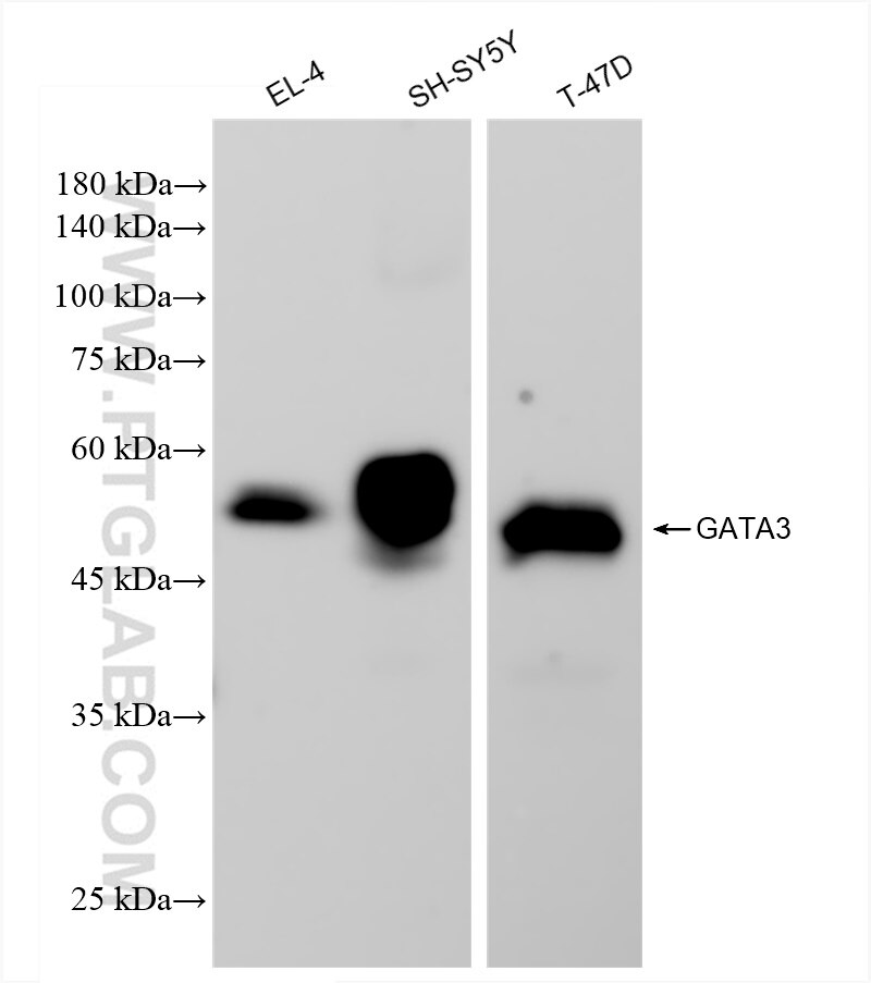 The GATA3 antibody from Proteintech is a rabbit recombinant antibody to a fusion protein of human GATA3. This antibody recognizes human, mouse antigen. The GATA3 antibody has been validated for the following applications: WB, FC (Intra), ELISA analysis.