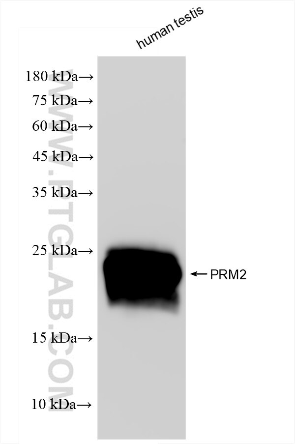 The PRM2 antibody from Proteintech is a rabbit recombinant antibody to a fusion protein of human PRM2. This antibody recognizes human antigen. The PRM2 antibody has been validated for the following applications: WB, ELISA analysis.