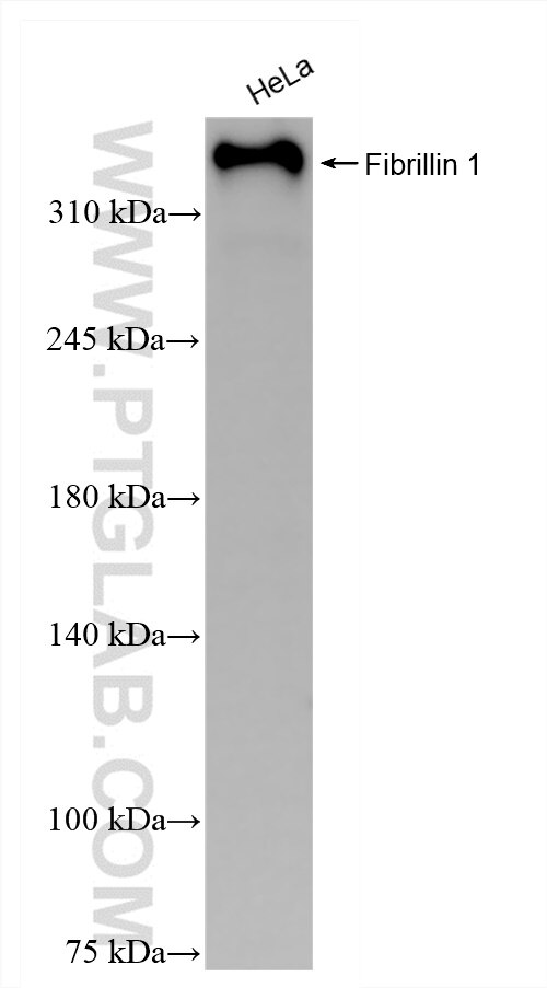 The Fibrillin 1 antibody from Proteintech is a rabbit recombinant antibody to a recombinant protein of human Fibrillin 1 . This antibody recognizes human antigen. The Fibrillin 1 antibody has been validated for the following applications: WB, IHC, ELISA analysis.