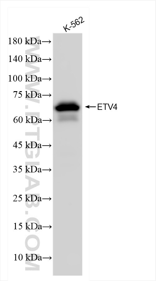 The ETV4 antibody from Proteintech is a rabbit recombinant antibody to a fusion protein of human ETV4. This antibody recognizes human antigen. The ETV4 antibody has been validated for the following applications: WB, IHC, IF/ICC, FC (Intra), ELISA analysis.