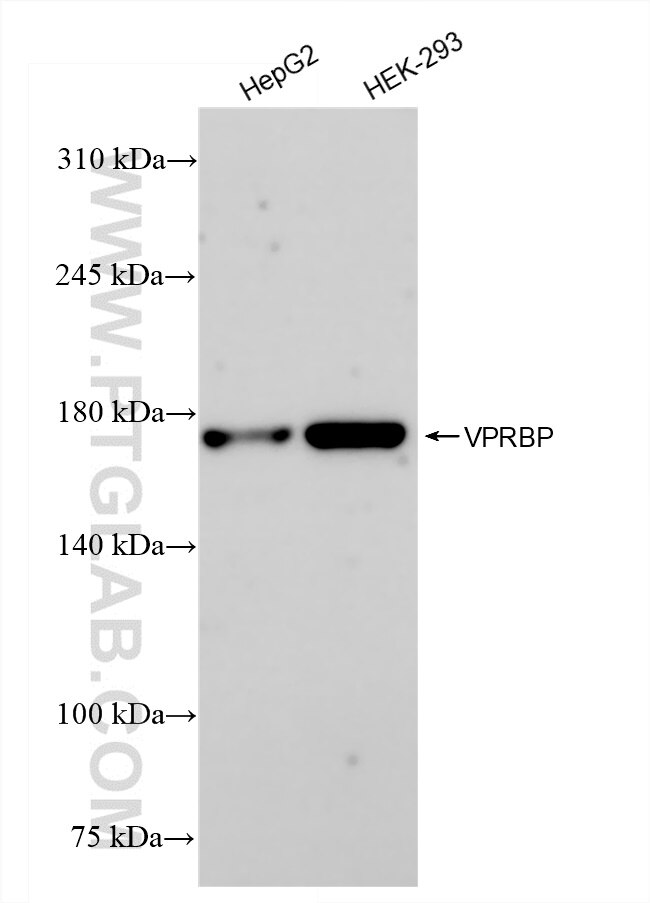 The VPRBP antibody from Proteintech is a rabbit recombinant antibody to a fusion protein of human VPRBP. This antibody recognizes human antigen. The VPRBP antibody has been validated for the following applications: WB, IF/ICC, ELISA analysis.