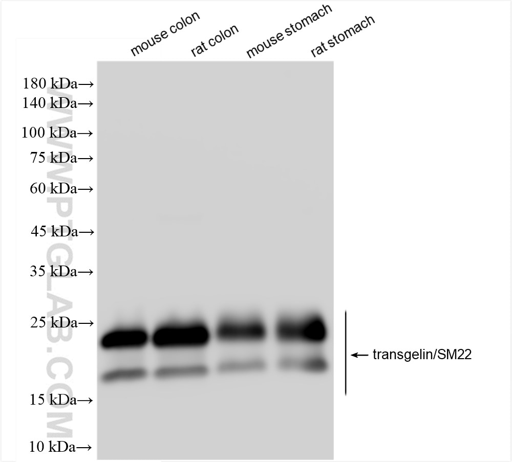 The transgelin/SM22 antibody from Proteintech is a rabbit recombinant antibody to a recombinant protein of human transgelin/SM22. This antibody recognizes human, mouse, rat antigen. The transgelin/SM22 antibody has been validated for the following applications: WB, IHC, IF-P, ELISA analysis.