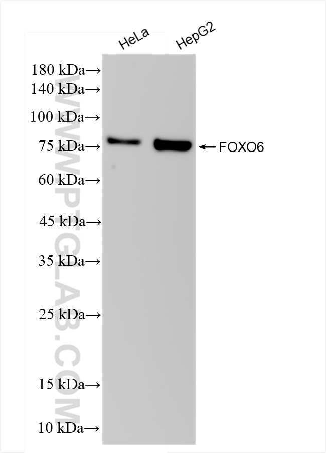 The FOXO6 antibody from Proteintech is a rabbit recombinant antibody to a peptide of human FOXO6. This antibody recognizes human, rat antigen. The FOXO6 antibody has been validated for the following applications: WB, IHC, IF/ICC, IF-P, ELISA analysis.