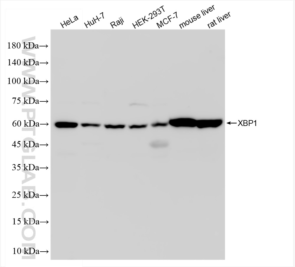The XBP1S-specific antibody from Proteintech is a rabbit recombinant antibody to a recombinant protein of human XBP1S-specific. This antibody recognizes human, mouse, rat antigen. The XBP1S-specific antibody has been validated for the following applications: WB, IHC, FC (Intra), ELISA analysis.