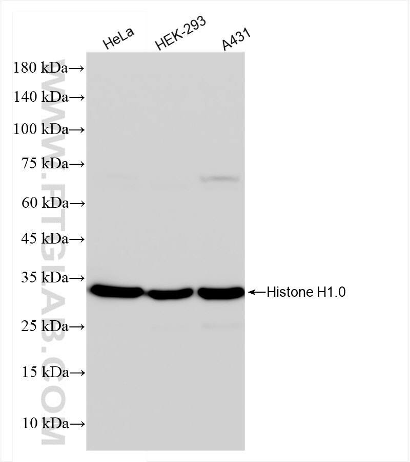 The Histone H1.0 antibody from Proteintech is a rabbit recombinant antibody to a fusion protein of human Histone H1.0. This antibody recognizes human, mouse, rat antigen. The Histone H1.0 antibody has been validated for the following applications: WB, FC (Intra), ELISA analysis.
