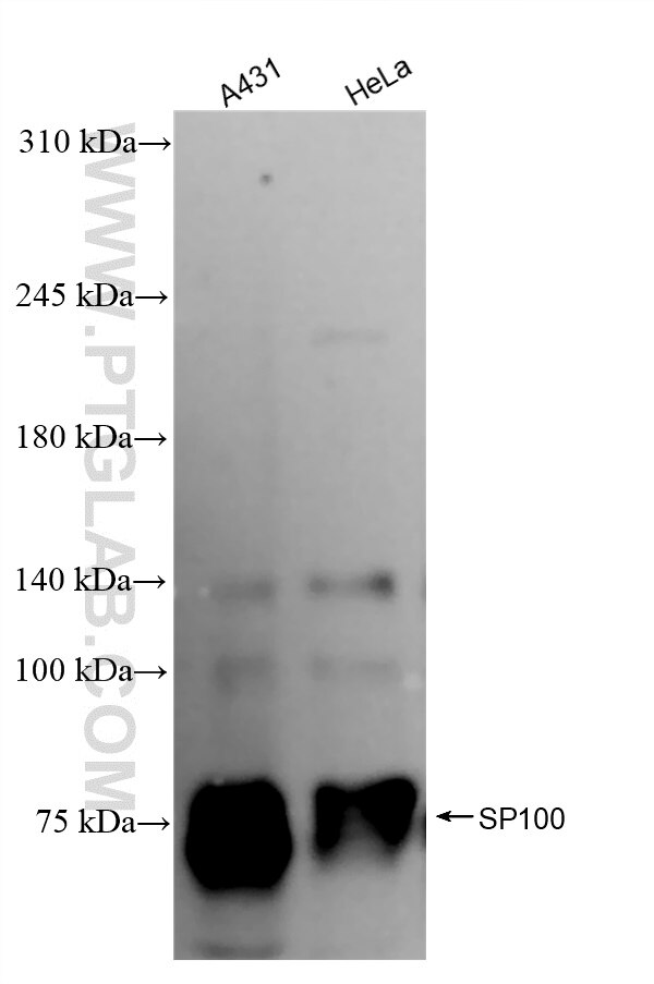 The SP100 antibody from Proteintech is a rabbit recombinant antibody to a recombinant protein of human SP100. This antibody recognizes human antigen. The SP100 antibody has been validated for the following applications: WB, IHC, IF/ICC, ELISA analysis.