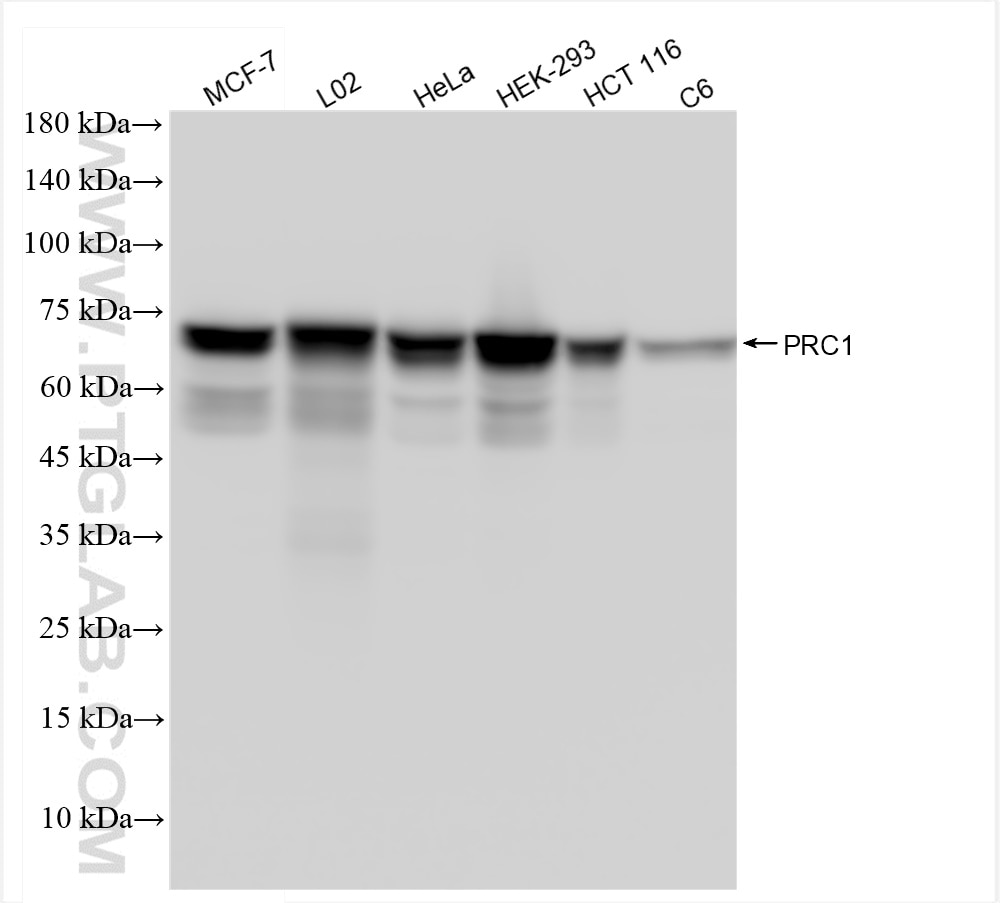 The PRC1 antibody from Proteintech is a rabbit recombinant antibody to a recombinant protein of human PRC1. This antibody recognizes human antigen. The PRC1 antibody has been validated for the following applications: WB, IF/ICC, ELISA analysis.
