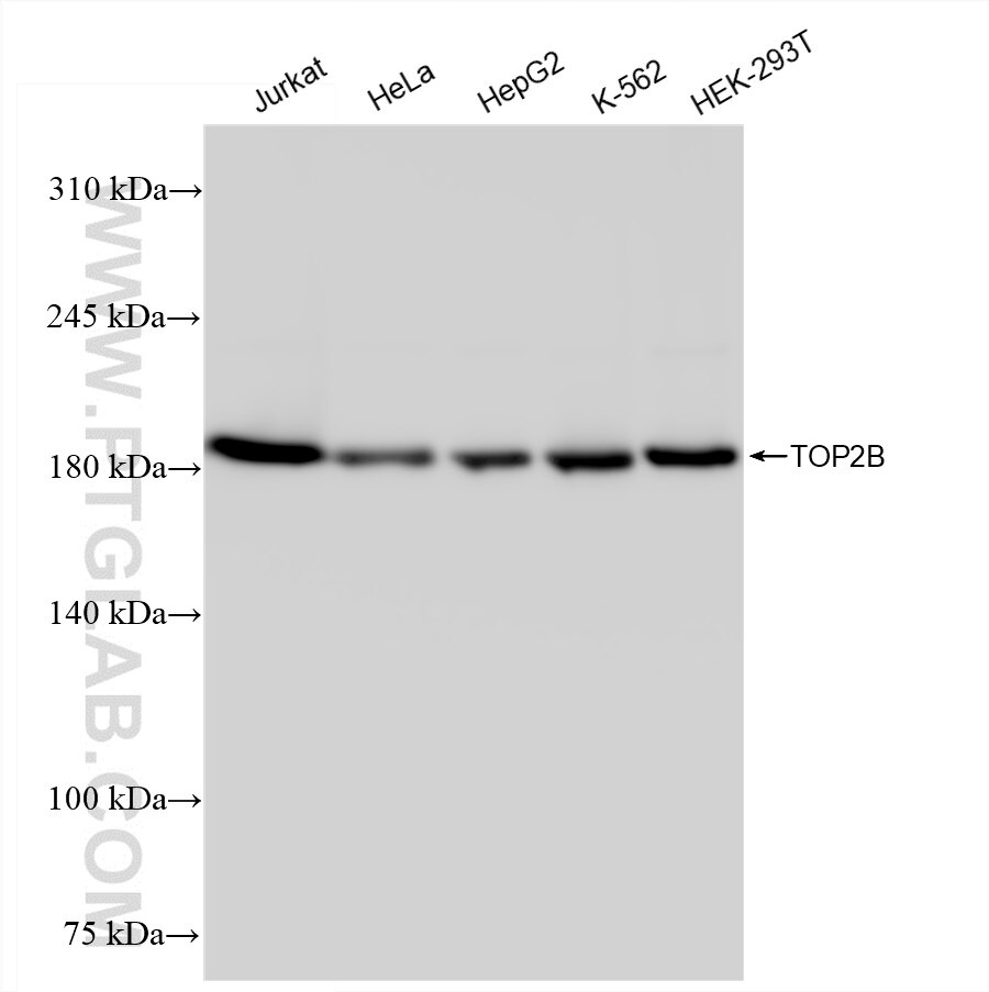 The TOP2B antibody from Proteintech is a rabbit recombinant antibody to a peptide of human TOP2B. This antibody recognizes human antigen. The TOP2B antibody has been validated for the following applications: WB, ELISA analysis.