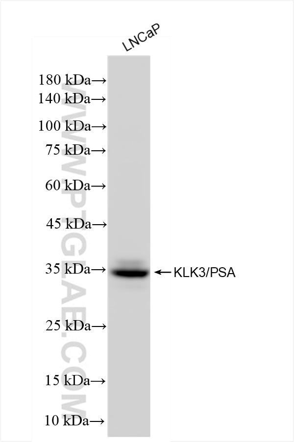 The KLK3/PSA antibody from Proteintech is a rabbit recombinant antibody to a fusion protein of human KLK3/PSA. This antibody recognizes human antigen. The KLK3/PSA antibody has been validated for the following applications: WB, ELISA analysis.