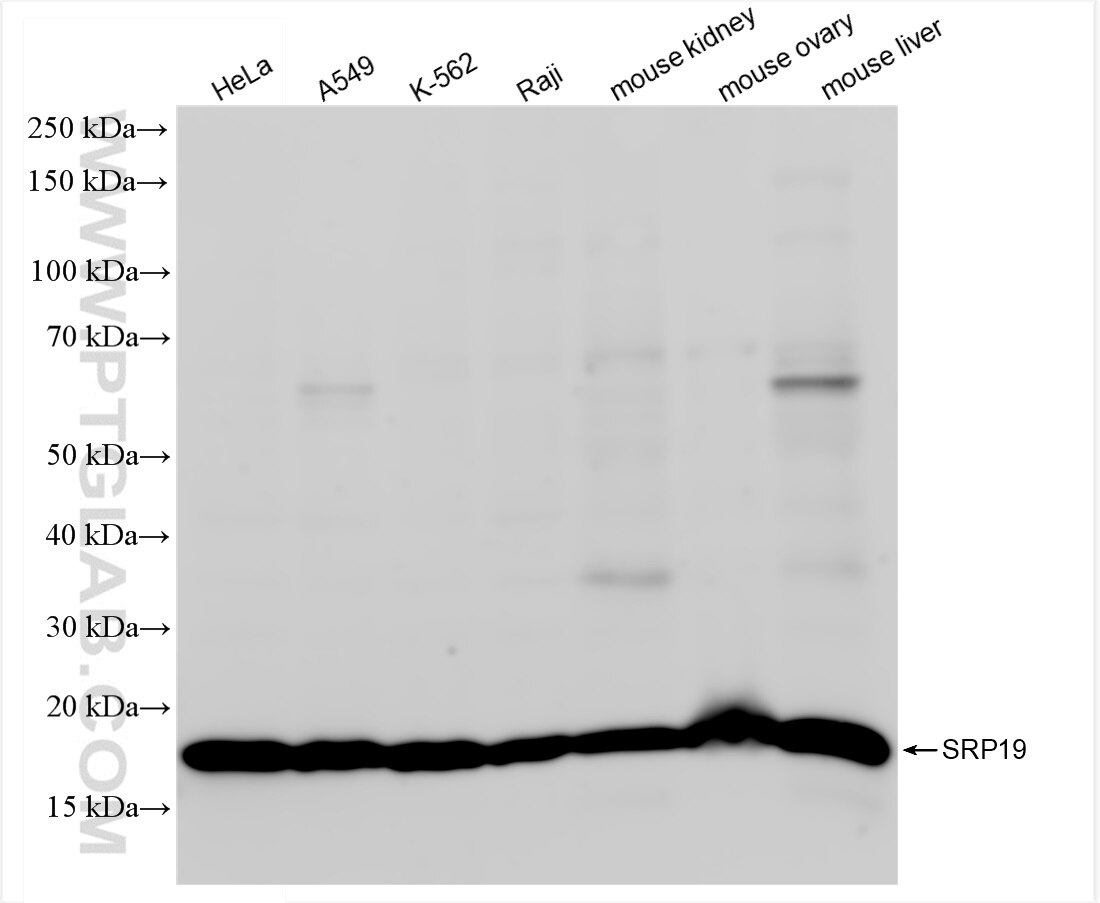The SRP19 antibody from Proteintech is a rabbit recombinant antibody to a recombinant protein of human SRP19. This antibody recognizes human, mouse antigen. The SRP19 antibody has been validated for the following applications: WB, IF/ICC, ELISA analysis.