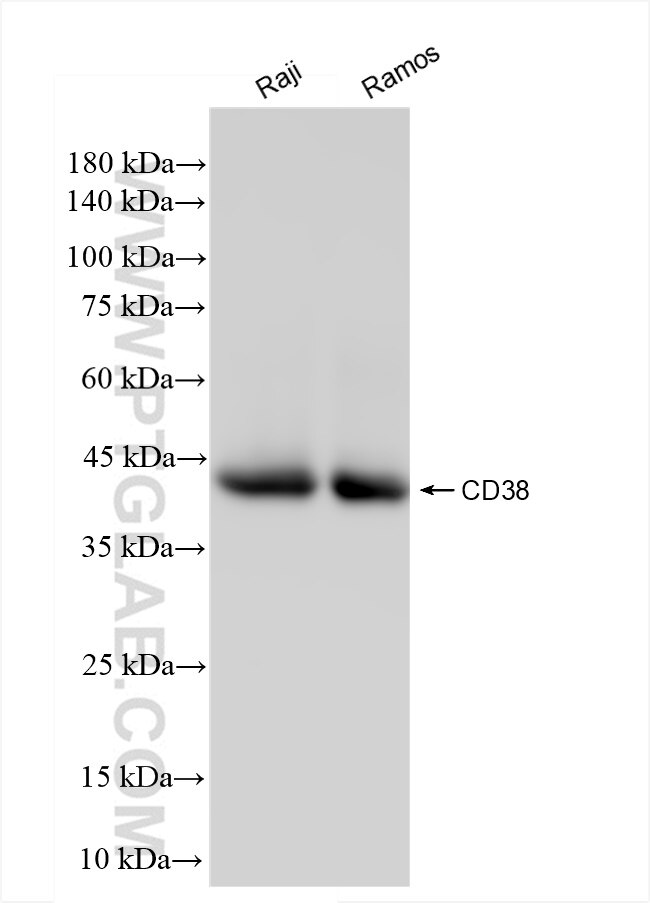 The CD38 antibody from Proteintech is a rabbit recombinant antibody to a recombinant protein of human CD38. This antibody recognizes human antigen. The CD38 antibody has been validated for the following applications: WB, IF/ICC, ELISA analysis.