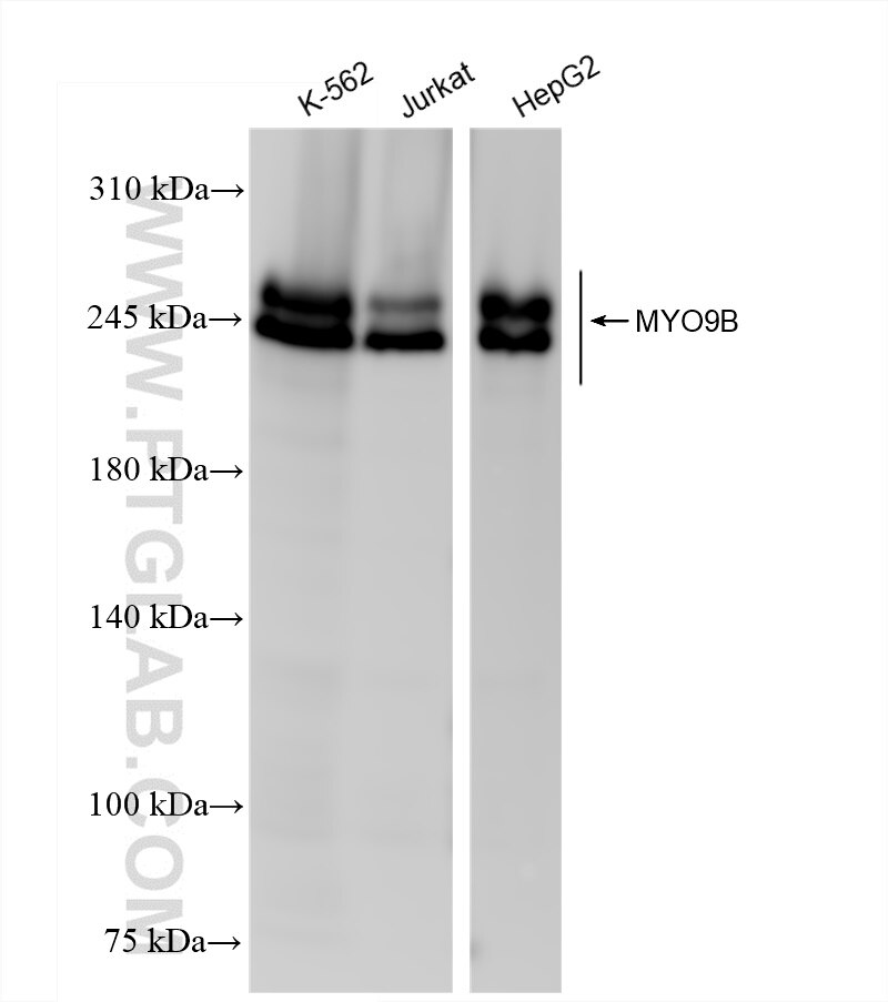 The MYO9B antibody from Proteintech is a rabbit recombinant antibody to a fusion protein of human MYO9B. This antibody recognizes human antigen. The MYO9B antibody has been validated for the following applications: WB, FC (Intra), ELISA analysis.