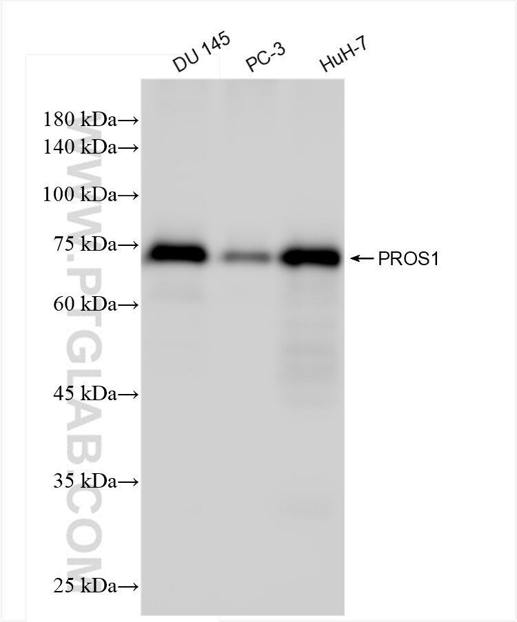 The PROS1 antibody from Proteintech is a rabbit recombinant antibody to a recombinant protein of human PROS1. This antibody recognizes human antigen. The PROS1 antibody has been validated for the following applications: WB, IHC, IF/ICC, FC (Intra), ELISA analysis.