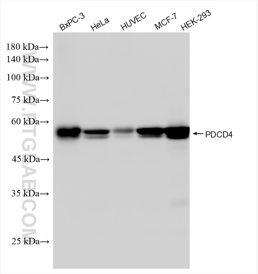 The PDCD4 antibody from Proteintech is a rabbit recombinant antibody to a fusion protein of human PDCD4. This antibody recognizes human antigen. The PDCD4 antibody has been validated for the following applications: WB, FC (Intra), ELISA analysis.