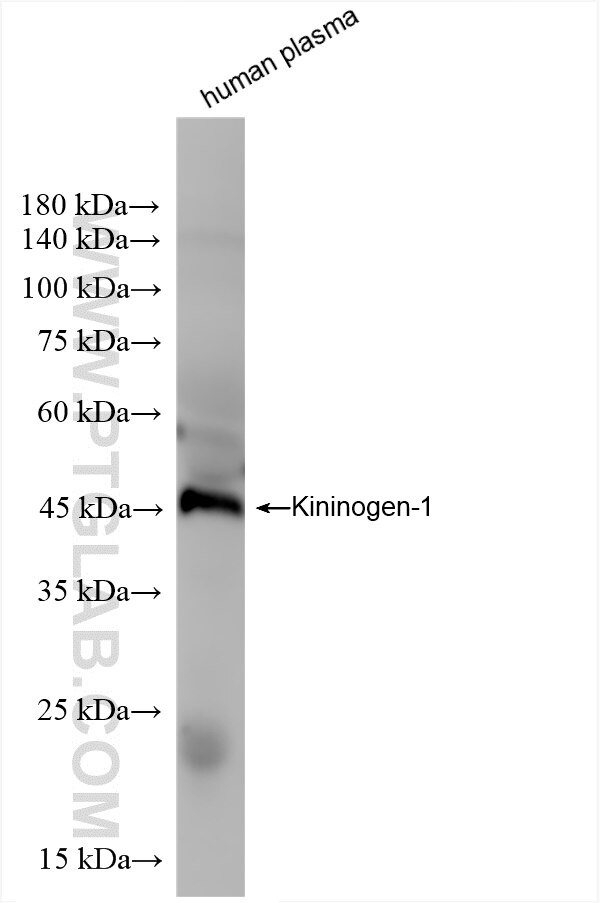 The Kininogen 1 antibody from Proteintech is a rabbit recombinant antibody to a recombinant protein of human Kininogen 1. This antibody recognizes human antigen. The Kininogen 1 antibody has been validated for the following applications: WB, FC (Intra), ELISA analysis.