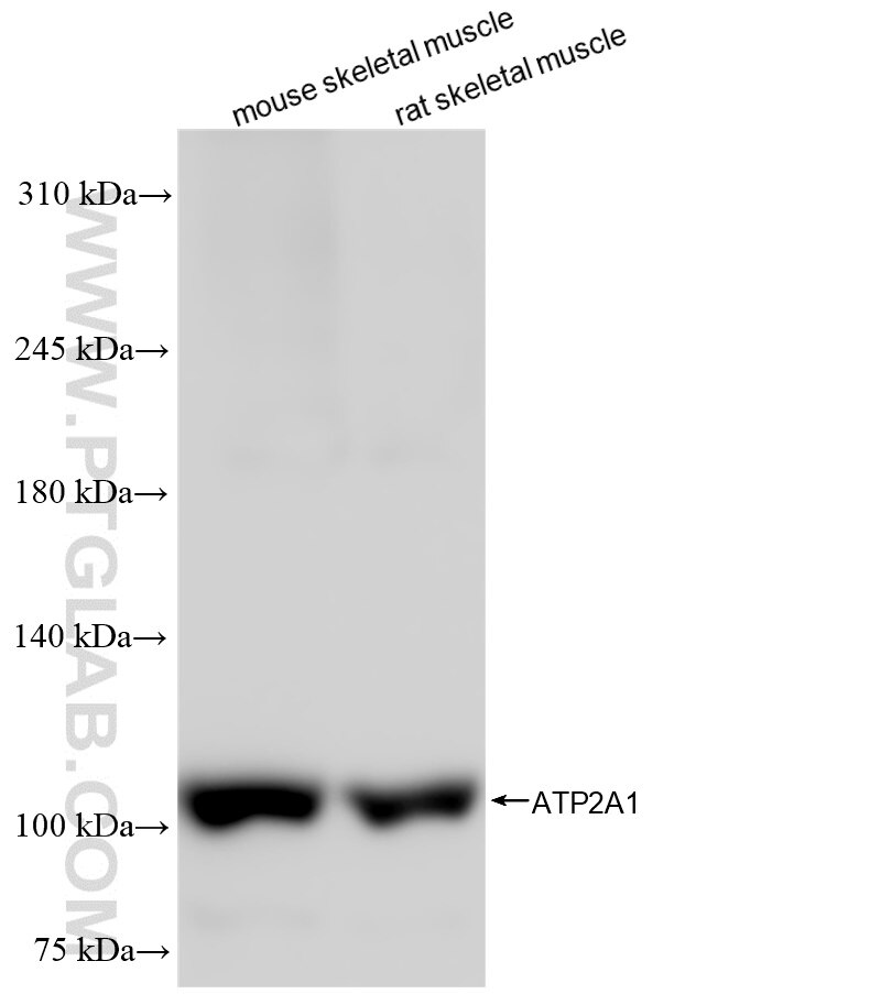 The ATP2A1 antibody from Proteintech is a rabbit recombinant antibody to a recombinant protein of human ATP2A1. This antibody recognizes human, mouse, rat antigen. The ATP2A1 antibody has been validated for the following applications: WB, IHC, IF-P, ELISA analysis.