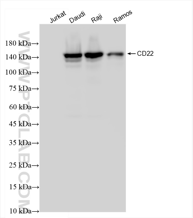 The CD22 antibody from Proteintech is a rabbit recombinant antibody to a recombinant protein of human CD22. This antibody recognizes human antigen. The CD22 antibody has been validated for the following applications: WB, ELISA analysis.