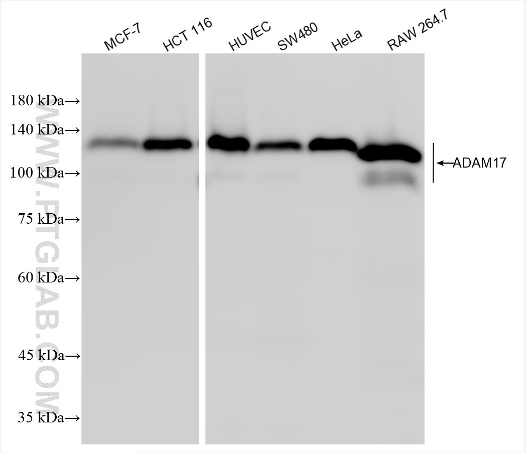 The ADAM17 antibody from Proteintech is a rabbit recombinant antibody to a recombinant protein of human ADAM17. This antibody recognizes human, mouse antigen. The ADAM17 antibody has been validated for the following applications: WB, IHC, FC (Intra), ELISA analysis.